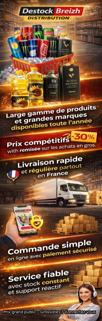 Ces produits sont pensés pour répondre aux attentes d’un large public et s’intègrent facilement dans les rayons boissons des points de vente. Chaque référence est conditionnée de manière à faciliter le stockage, la rotation des stocks et la revente en gros.