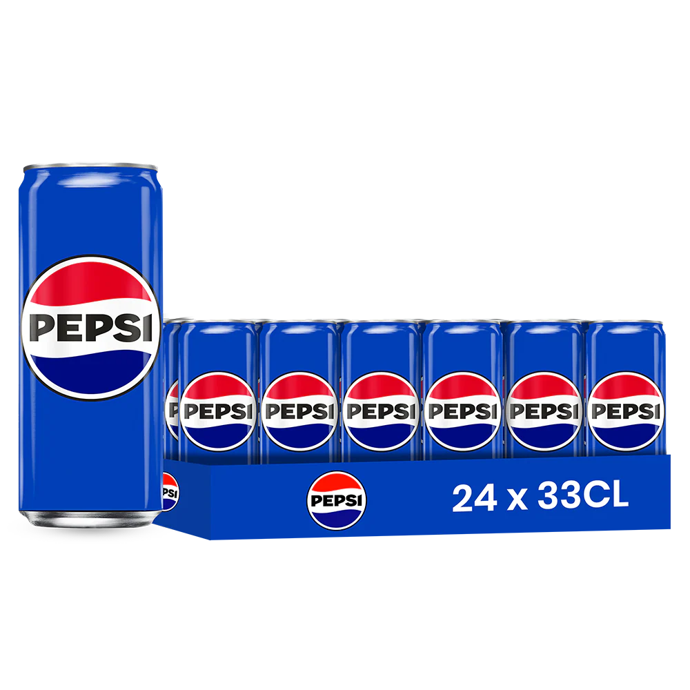Pack de 24 canettes Pepsi 33 cl, boisson cola emblématique au goût rafraîchissant et pétillant, idéale pour tout point de vente souhaitant proposer une référence incontournable à forte rotation, disponible à prix grossiste avec livraison rapide par DESTOCK BREIZH DISTRIBUTION.